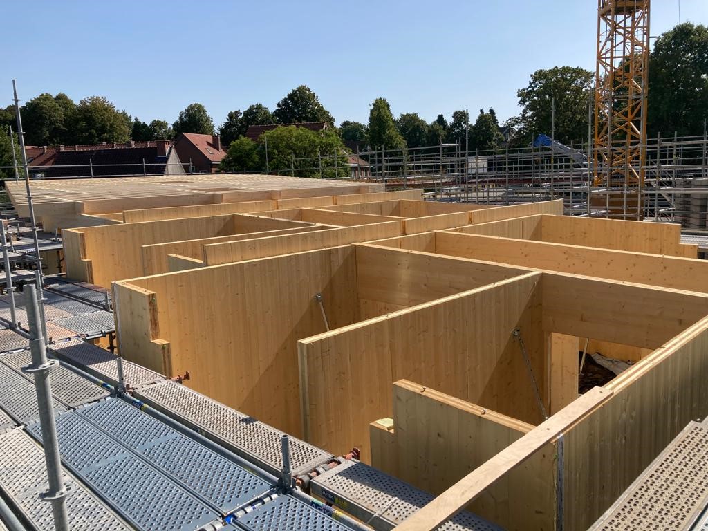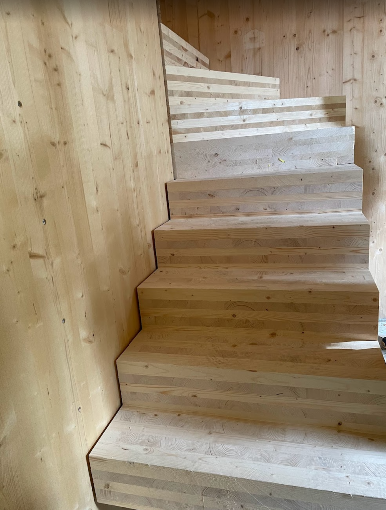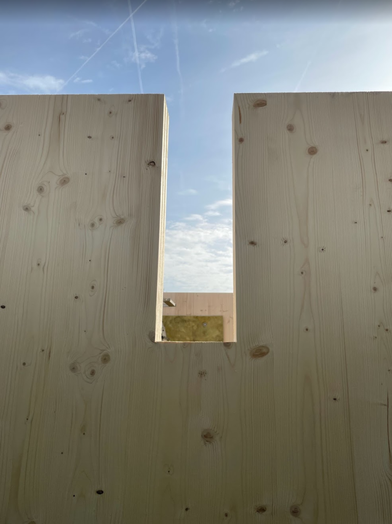• 1.460m³ de CLT, ce qui représente 2.350m² de planchers qui resteront apparents et 9.400m² de murs (porteurs et non porteurs)